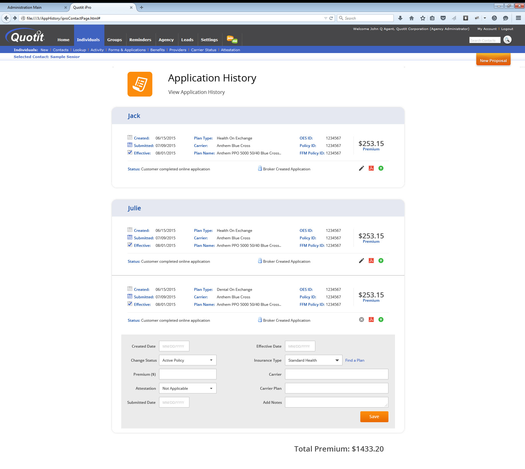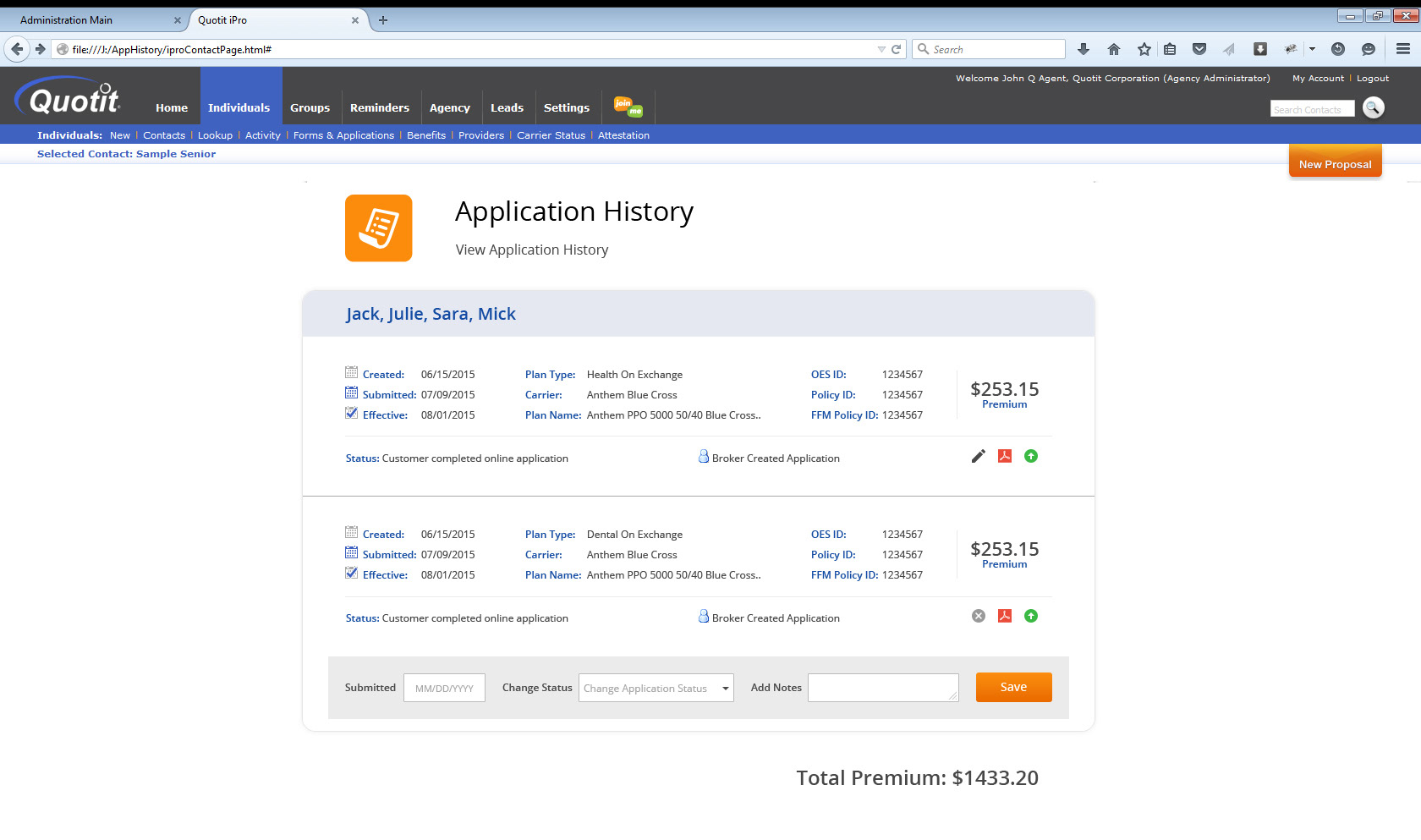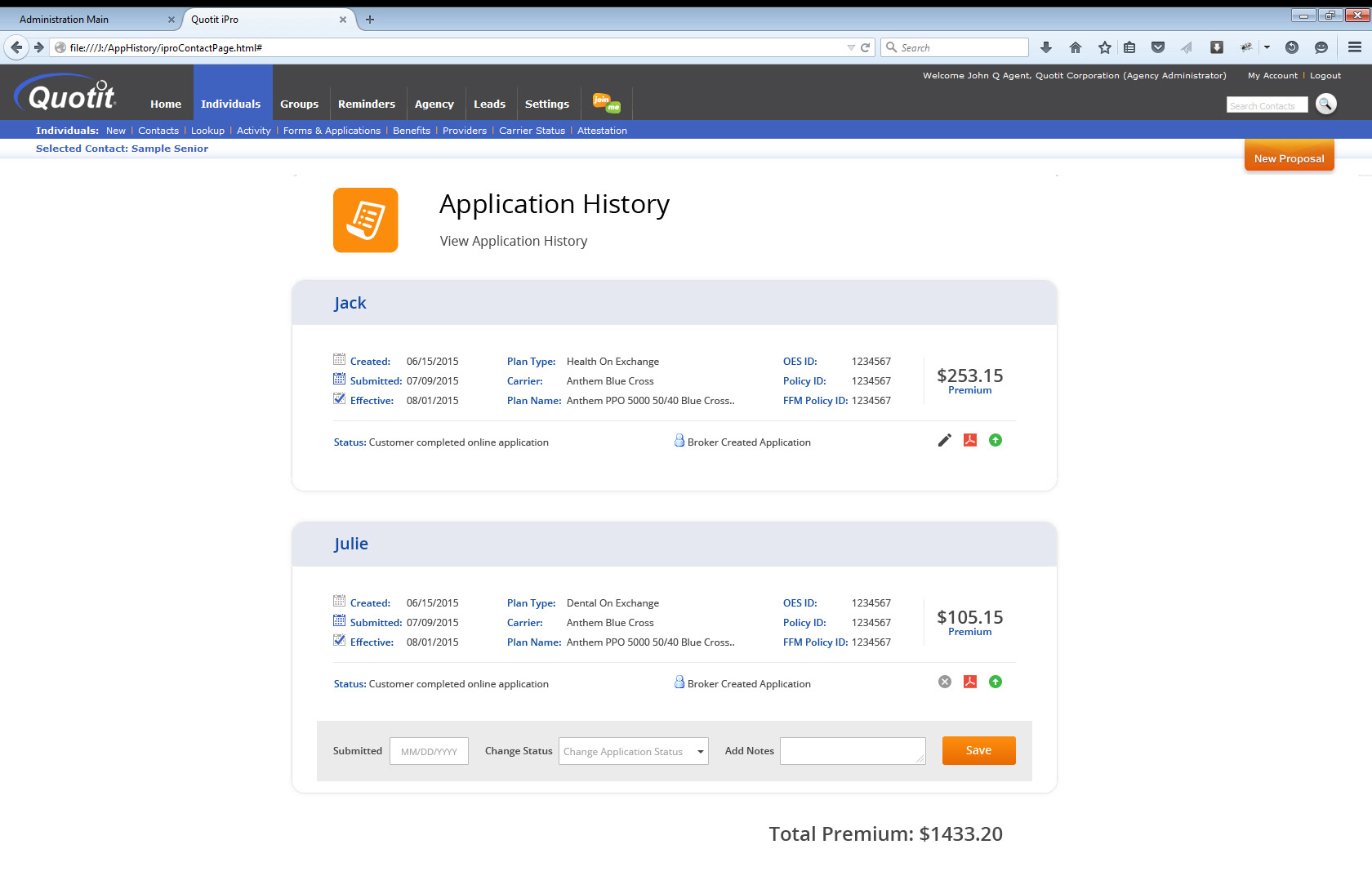 Quotit Application History